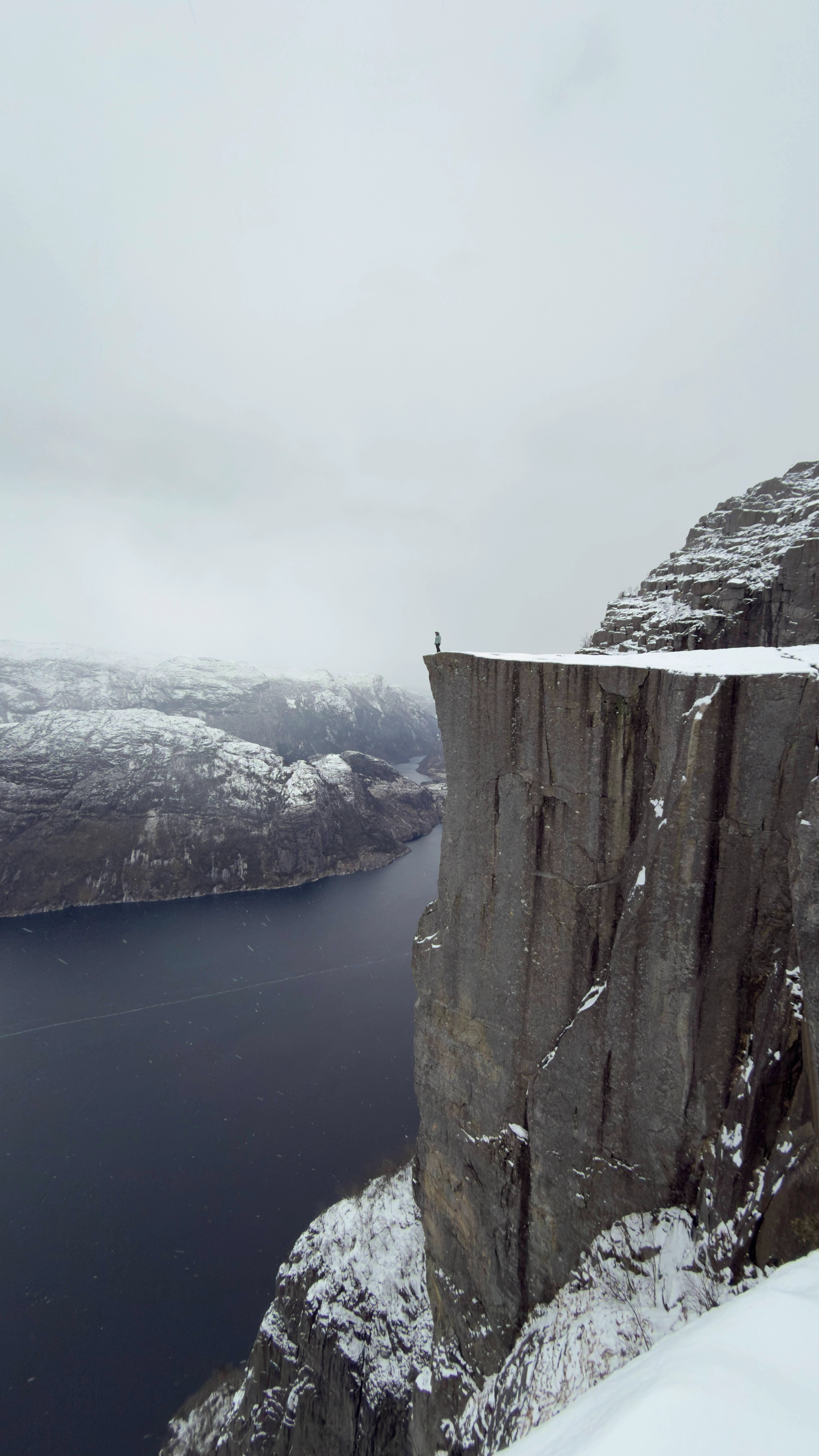 There were also moments that felt slightly less sensible, like standing near the edge of a 604-metre drop above Lysefjord, or swimming when it was −17°C and discovering that wet hair freezes faster than expected.